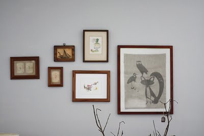 {Tip: When hanging artwork or framed photos on the wall make sure there is a good amount of space in between them. Here I hung up a number of small pieces together but because they are set up in a structured way and have at least 1.5 to 2 inches in between them, they don’t look like a mess}