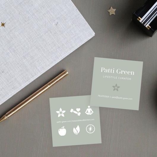 Pretty little business cards I created for @pattigreenhealthyliving this week. We incorporated this new green and will add it to her branding palette moving forward. Always a pleasure working with Patti.