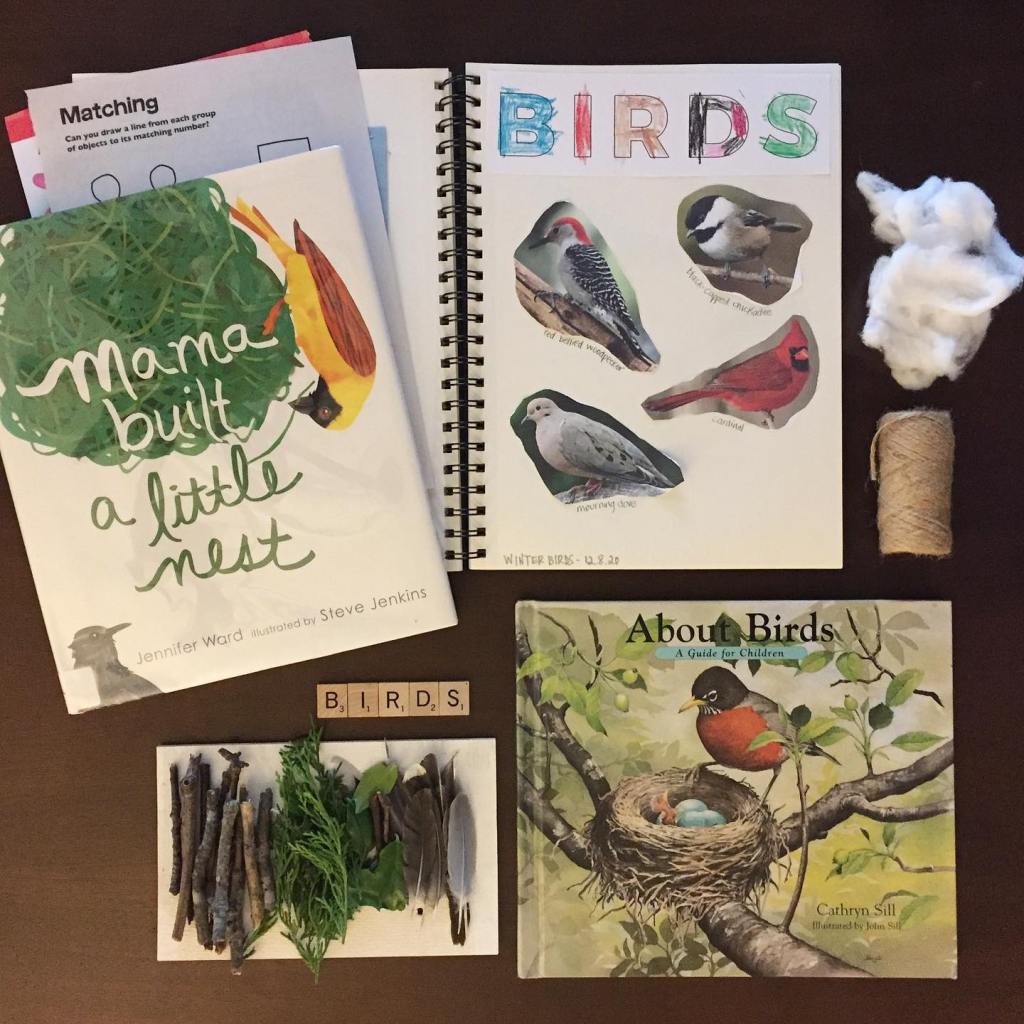 After lunch we read Mama Built a Little Nest by Jennifer Ward and started building our own little nest with various materials I had on hand. Someone was a bit tired so we are going to finish it during the week. We love birds and watch them everyday here at home so this is a pretty fun week for us.