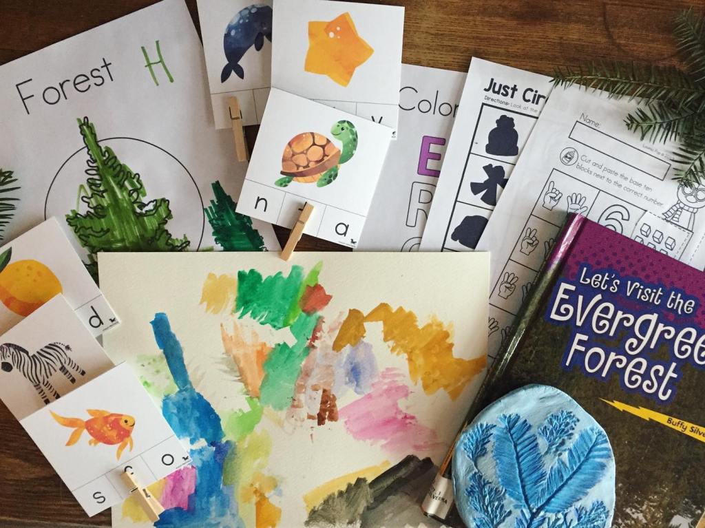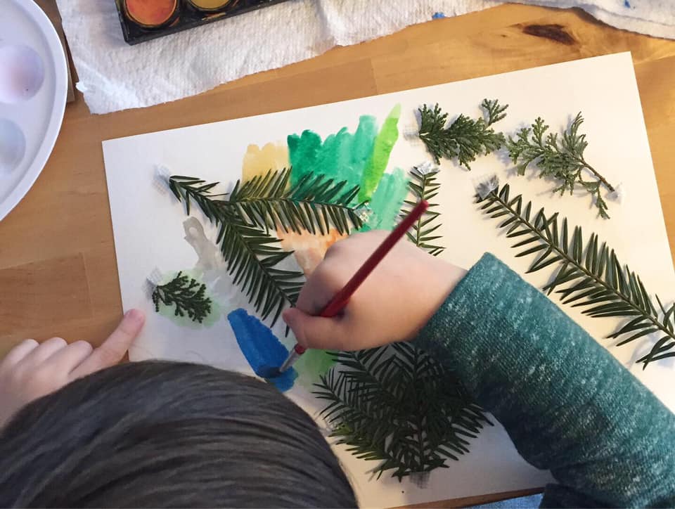 Today Elliot and I are staying in and keeping cozy. Moving on with our evergreen study we read Let’s Visit the Evergreen Forest by Buffy Silverman and colored some trees for our journal. Then Elliot practiced letters with clip cards by @whimsyprintables, numbers and shadow matching. For our little art session he did a pine needle painting and I finished my evergreen plaque with some watercolors. Time to eat lunch!