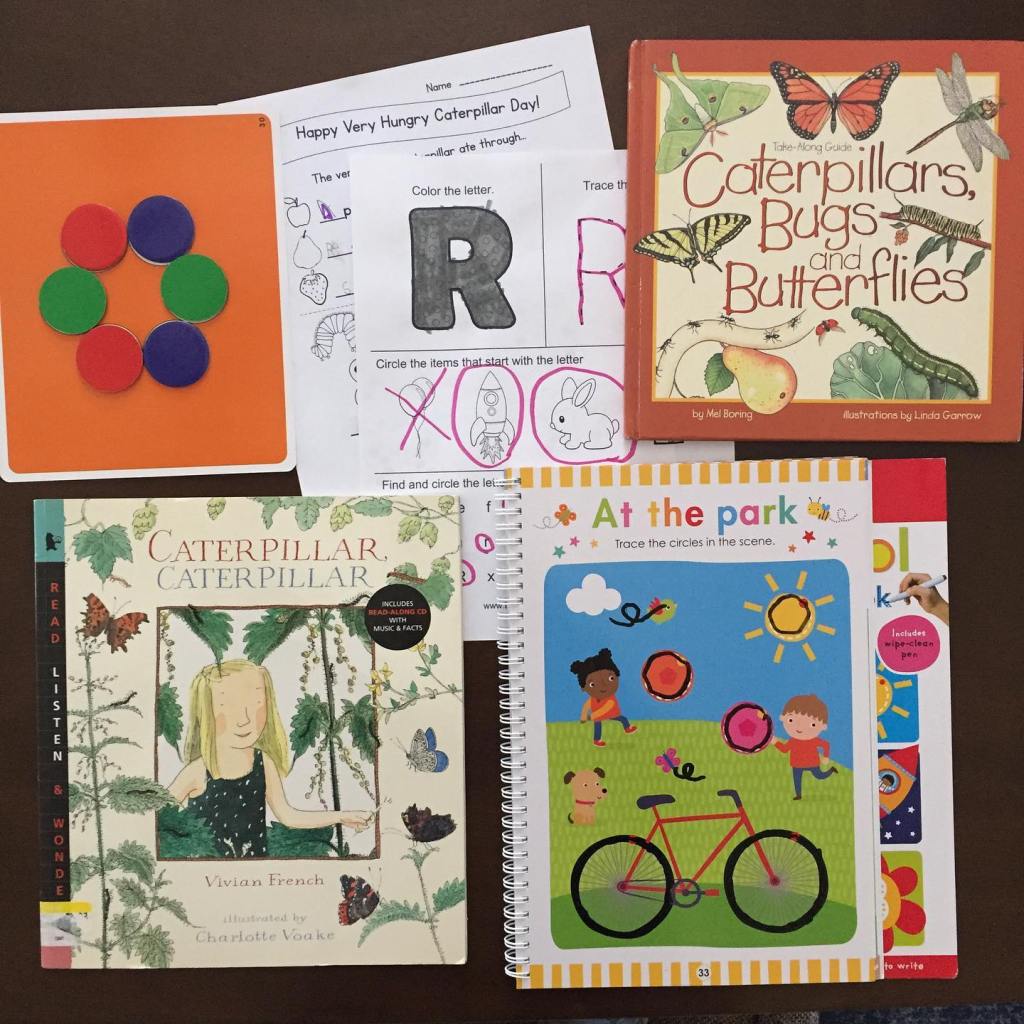 We are still learning about caterpillars this week! And boy are they fascinating. We read a nice story and reviewed various types, then practiced circles with a puzzle and a tracing exercise. We also went over the letter R and had a number lesson with our marbles and a fun worksheet.