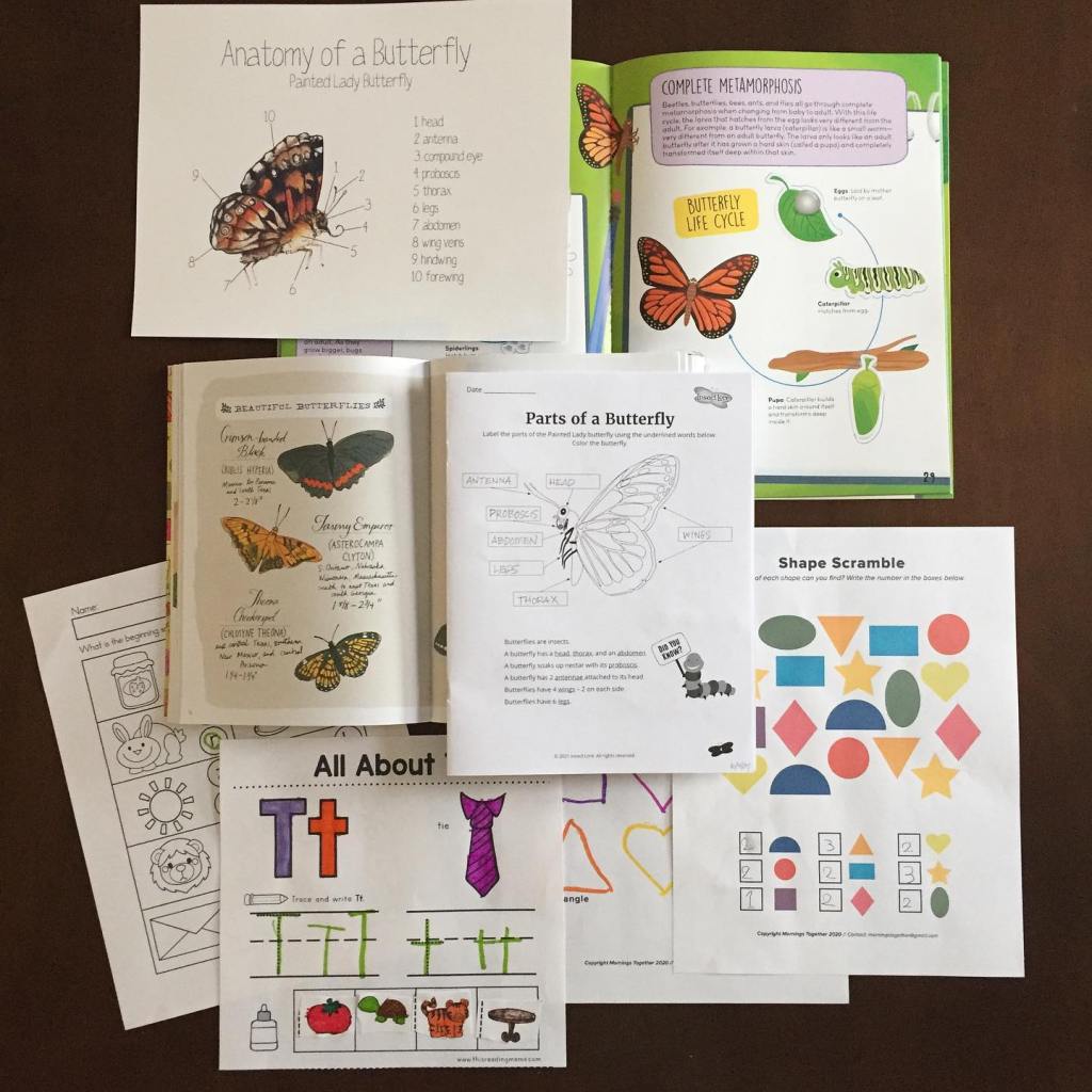 Trying to have an easy morning over here so I kept our lesson pretty short. We looked at various butterflies and moths, reviewed the anatomy, practiced letters/shapes/numbers, and completed a sticker activity in our bug book. I haven’t been feeling well so the rest of the day we are taking it easy. Happy Friday everyone.