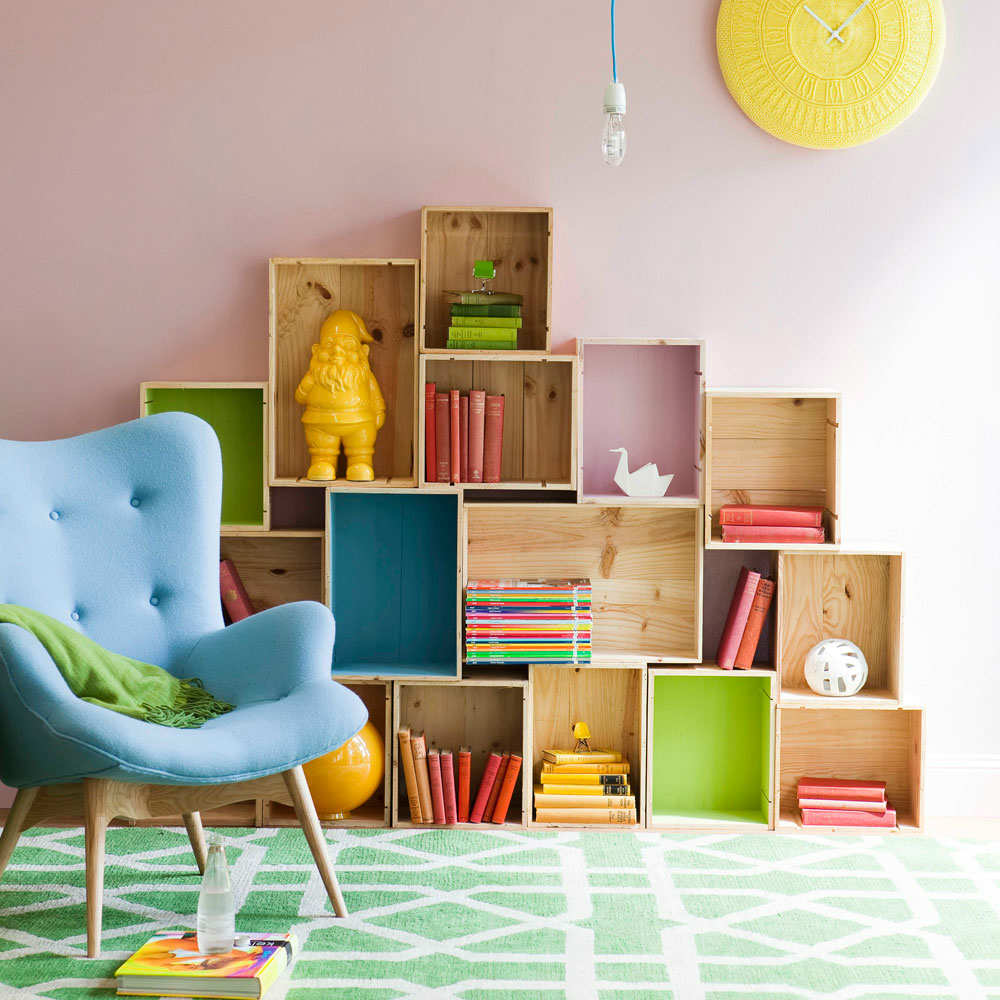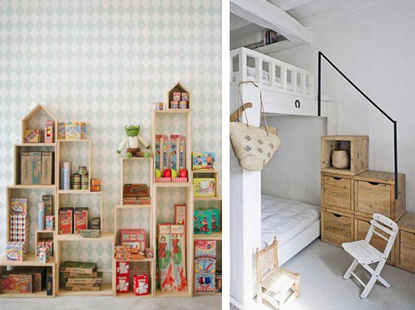 Boxes and crates are cool too because you can stack them and design your own structures. Plus, they immediately turn your storage items into accessories, so you will want to use items that are nice to look at. This may help your children to get involved in cleanup time too!