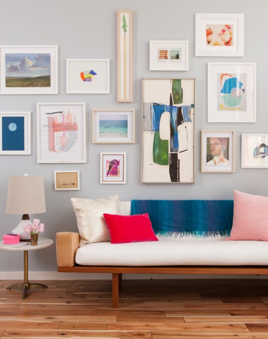 Depending on the space you have to work with, you can either hang a large piece, create a gallery wall of smaller pieces, or feature a few medium sized items. You need to take the furniture, windows, and doors into consideration as well. I know I have mentioned it before, but DO NOT hang pictures above windows or doorways. It’s just not right, lol. Eye level is always the rule, with the exception of gallery walls. And if you are a bit shorter than most people, just raise it no more than 2 inches.