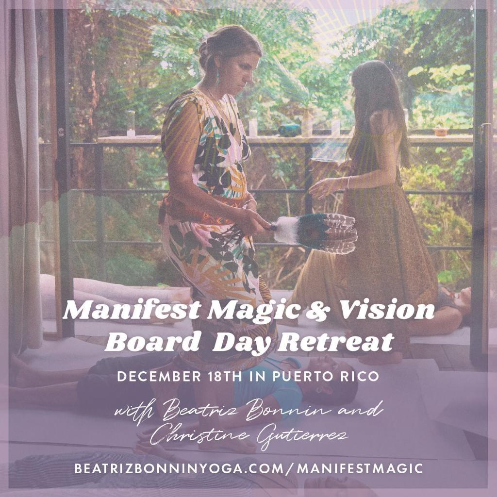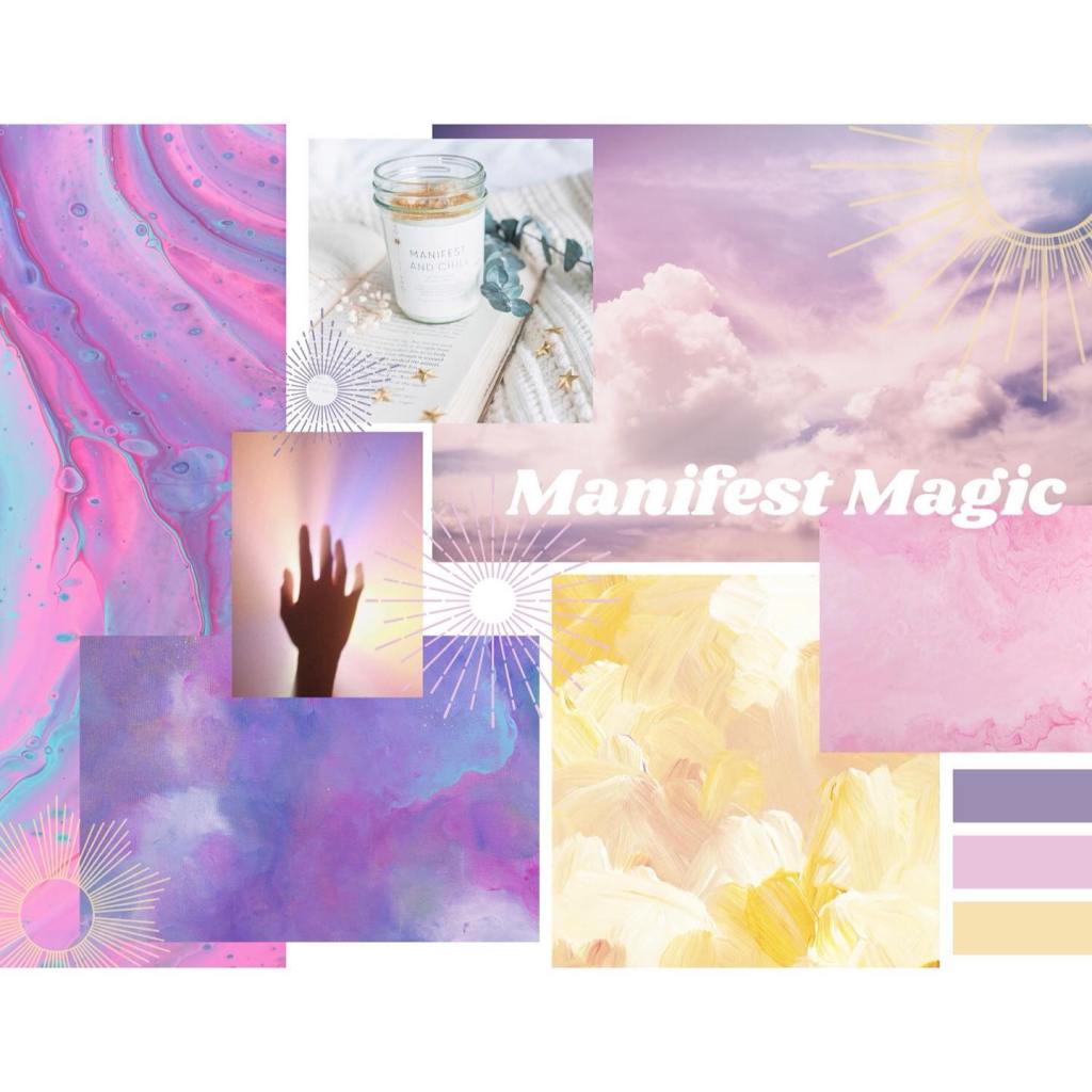 A logo, mood board, and some of the promos I created for @cosmicchristine and @beatrizbonninyoga for their new retreat, Manifest Magic