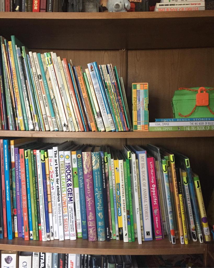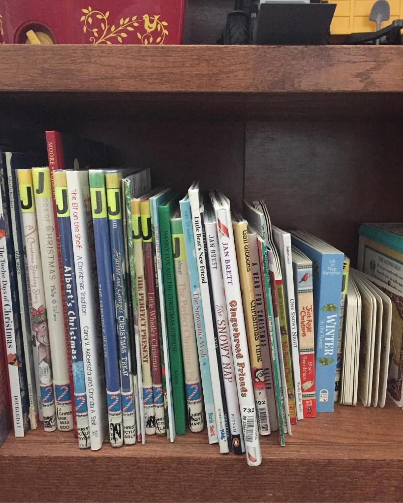 We have them everywhere but a few main areas store most. Elliot’s room has two bookshelves, the tall one is mostly filled with various stories and the other has a mix of books and toys. There they are grouped by winter/Christmas, little golden books, and board books he doesn’t want to part with yet. Then we have the two shelves in the playroom (which is where we also do lessons) that have our study books. I also keep some in the studio for him. ⠀⠀⠀⠀⠀⠀⠀⠀⠀
