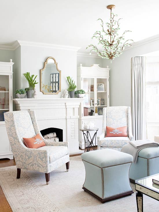 {This modern victorian living room has all the elements this style calls for. From classic furniture to the elegant details, it all come together nicely. The use of pale neutrals helps distribute the weight evenly across the room allowing it to feel airy and open}