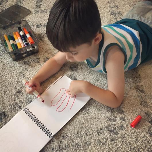 Two days a week Elliot is home with me so I don’t schedule much work to do. He’s pretty good at keeping himself busy in the studio but can be VERY distracting 😂 So I’m not able to really focus much. This afternoon he was a bit wild and loud but was quite chill while he was drawing. And even though it was only for about 15 minutes, it makes my heart happy when he is doing anything creative, especially art. To many, many more years of drawing my love.