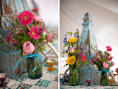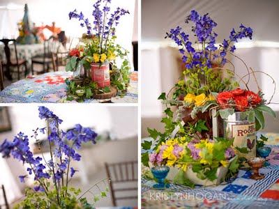 The party was held at Front Porch Farms in Nashville which is such a beautiful place. All the flowers looked as if they were handpicked from the garden and I love the addition of found objects and vintage finds. So nostalgic and pretty. One of my favorite elements was the tablecloths. They were so adorable! Patchwork quilts led the way for guests to sit and relax.