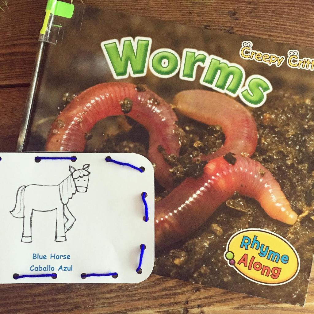 Today we dove back into our earthworm study with Garden Wigglers by Nancy Loewen. We then practiced letters with a worksheet and new clip cards, had some number lessons with measurements (used small blocks) and count and clip cards, and worked on our worm anatomy worksheet. Elliot also colored a worm illustration for our nature journal