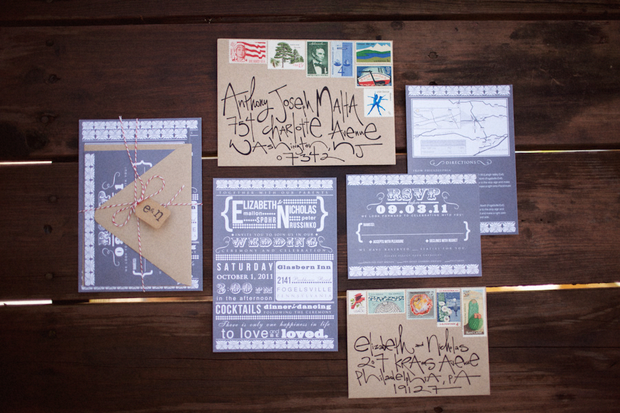 October 1, 2011 was a day Liz and Nick along with 91 of their closest friends and family will never forget. Held at the Glasbern Inn in Fogelsville, PA, their wedding celebration was an intimate experience that was nothing less than authentic. From all the beautiful handmade details and vintage materials to the independent vendors they had help them, this was surely a wedding that reflected their personal aesthetic and style.