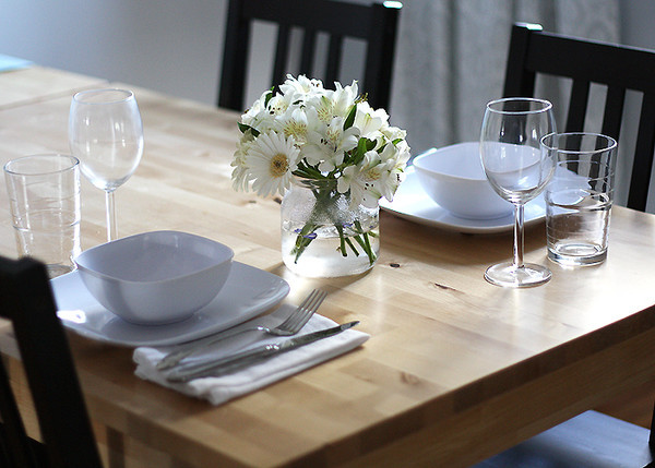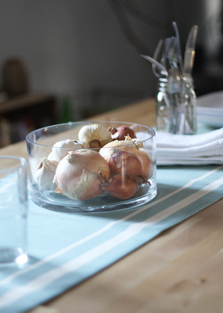 My husband and I converted a small coat closet to create our pantry. I knew there wouldn’t be enough space in the cabinets so it was a given. Although I always keep it organized, about two to three times a year I take everything out, clean it and reorganize. Since the door was always in the way, we took it off and hung a cute curtain that matched the country feel of our space. Much better.