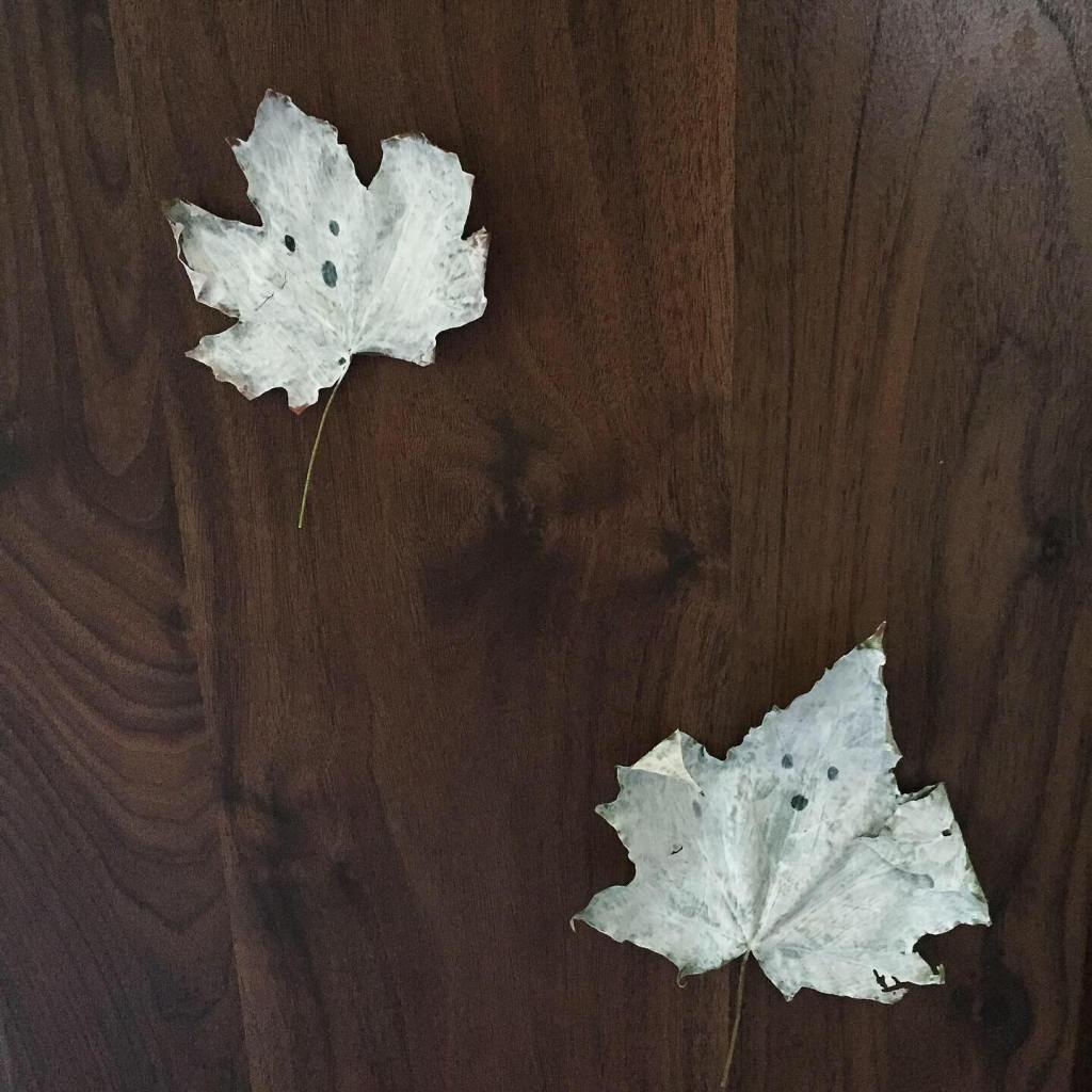 Elliot and I created our ghost leaves this afternoon to wrap up our tree study with some Halloween inspiration. I got this adorable idea from @woodlark and I just love them. We each had 3 leaves and after Elliot painted one coat, we let them dry and then I added a few more and drew the faces. Boo!