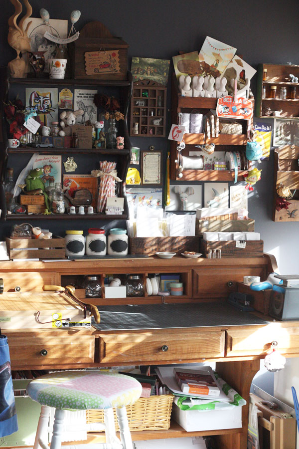I created 3 essential zones; my computer desk area where all paperwork and graphics are done, my printing station where I keep all orders as well as files and my craft area where I cut all paper and keep most supplies.